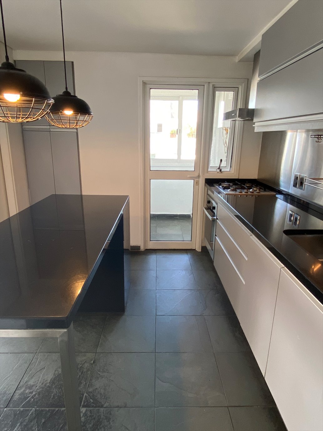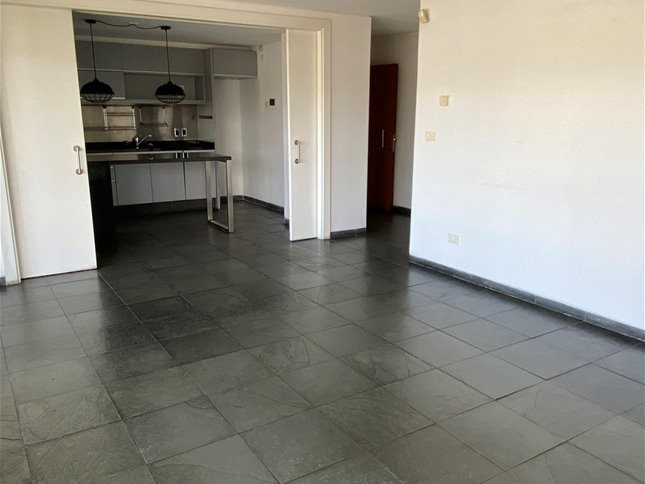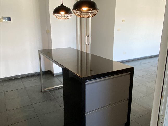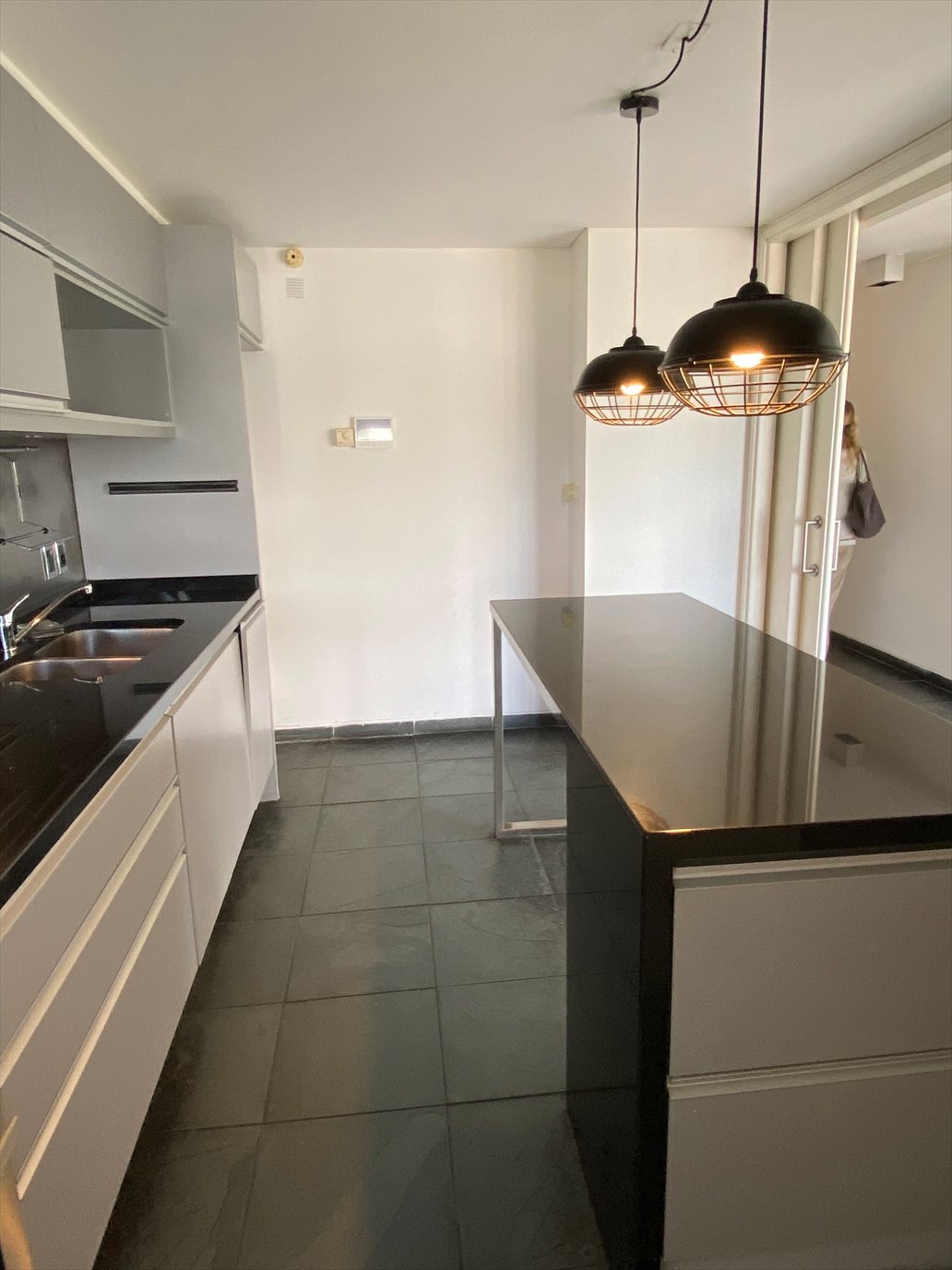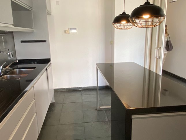 Cocina integrada (pero con puertas corredizas hacia el living) con terraza lavadero.