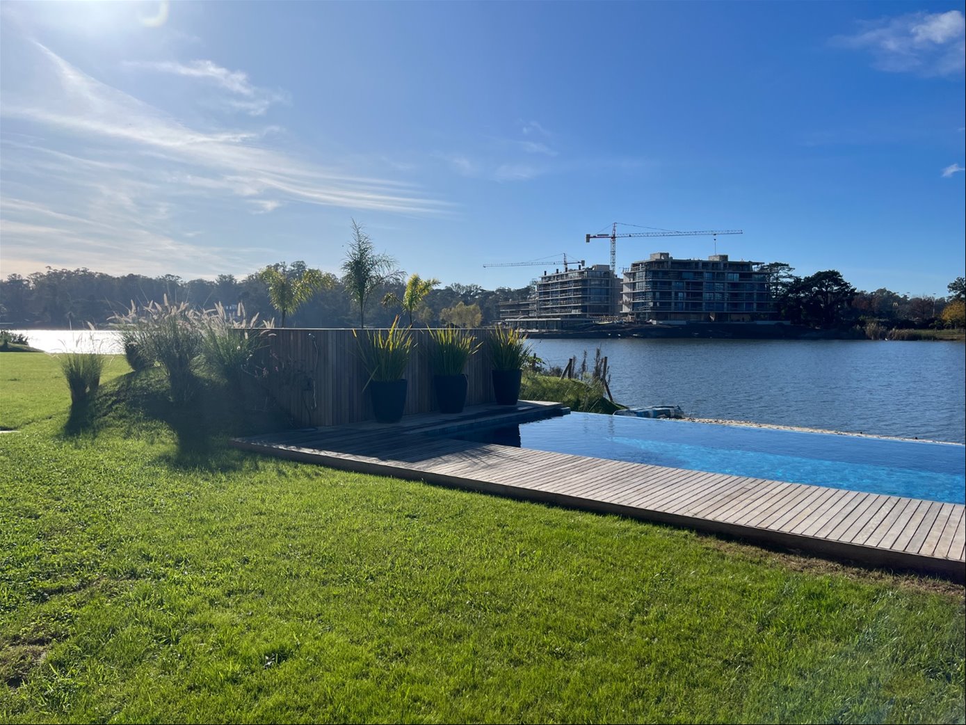 Hall de entrada, living y comedor con estufa a leña, amplia terraza con parrillero y una divina vista al lago.