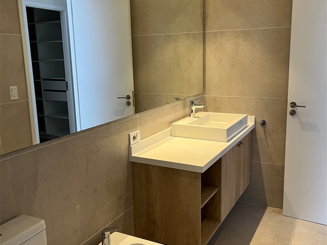 Tres dormitorios y 2 baños, principal en suite con vestidor. Todos los dormitorios con buenos placares.