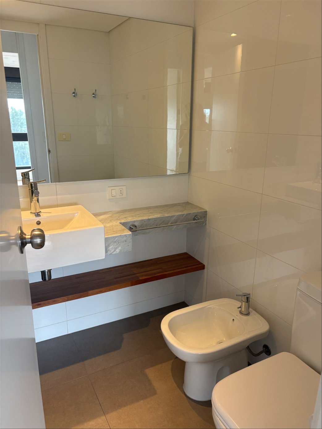 Living -comedor con terraza con parrillero, 2 dormitorios (ppal en suite con vestidor), cocina con pasaplatos,, tza lavadero.