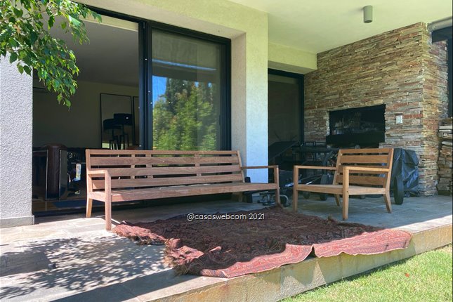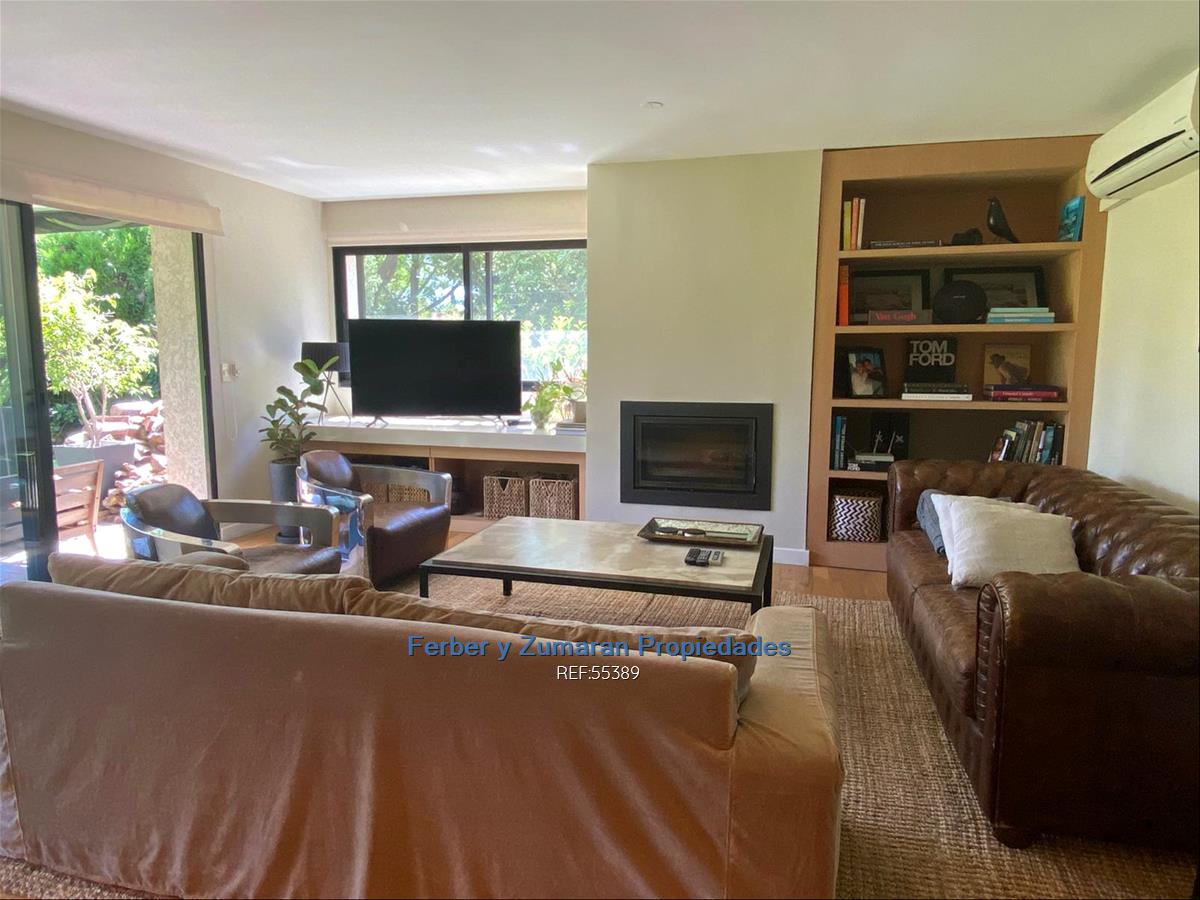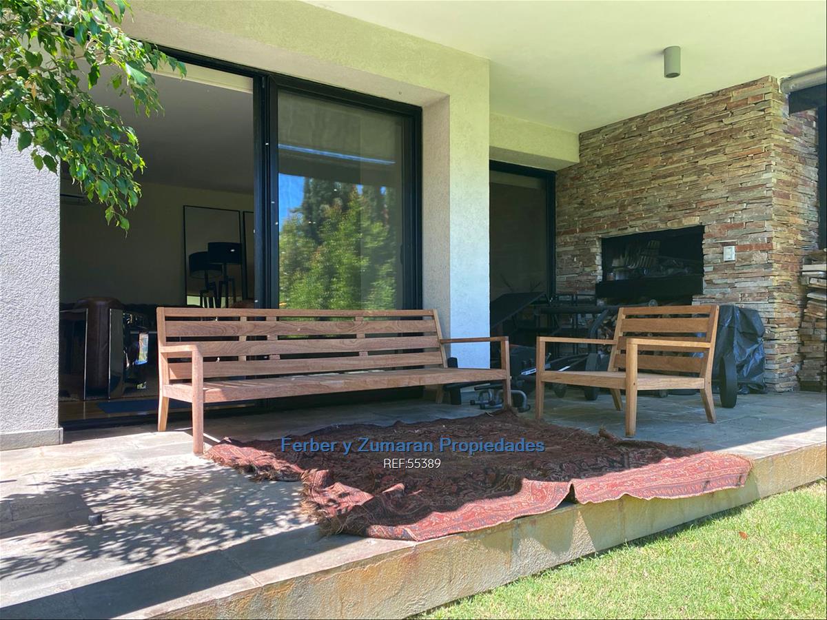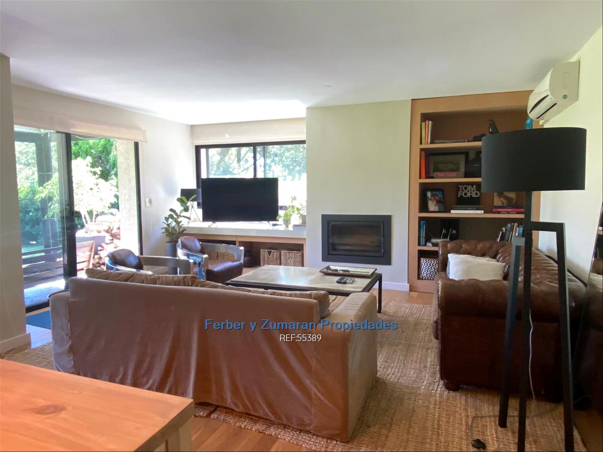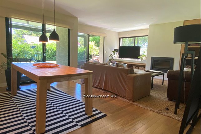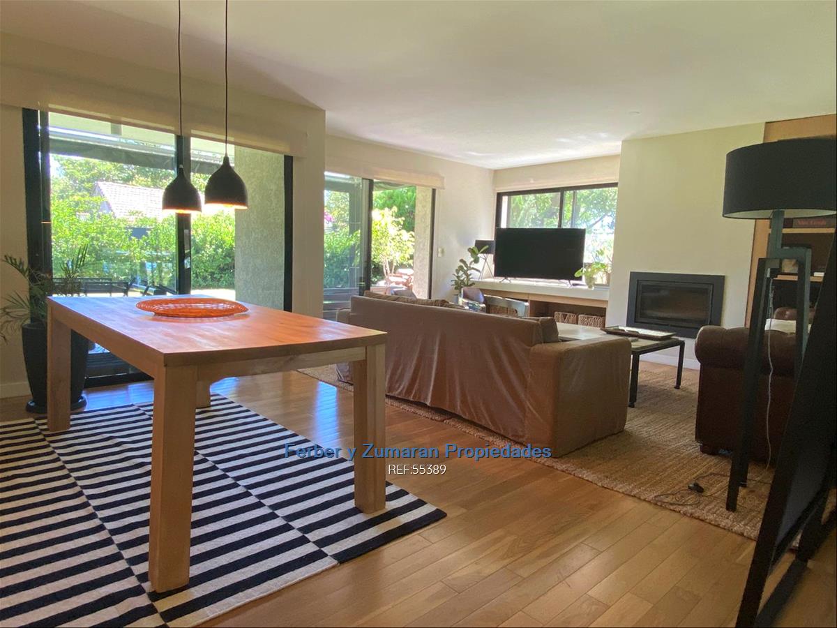 Hall, Living comedor en L, con pisos de madera , estufa a leña. Salida a terraza con parrillero .Jardin de uso exclusivo y privado de 260 m