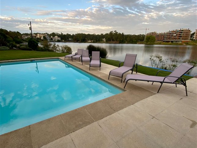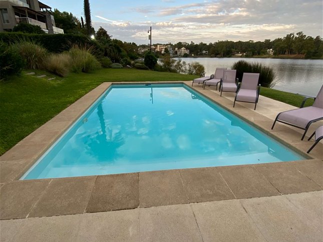 Piscina con deck al lago